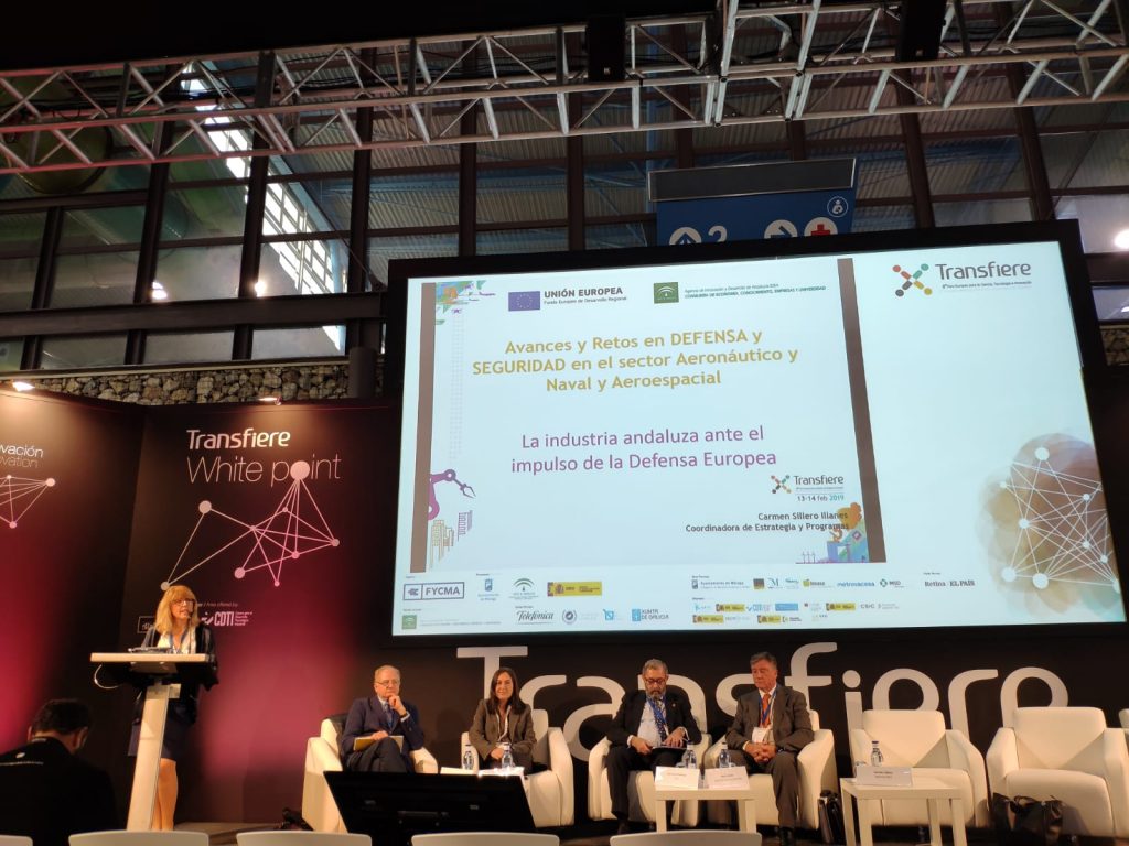 Por su parte, la coordinadora del Área de Estrategia y Programas, Carmen Sillero, analizó la importancia de la Defensa y la Seguridad en los sectores aeroespacial y naval de Andalucía. Además, repasó los grandes hitos de estos sectores como por ejemplo su inclusión entre las prioridades de estrategia por la especialización inteligente RIS3Andalucía o, en el futuro, la puesta en marcha del Fondo Europeo de Defensa.